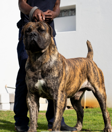 Though no longer with us, Karolis (RIP) remains a pivotal figure in our breeding program. Acquired within South Africa, Karolis was already a well-known stud with numerous show achievements and a high appraisal score. His international presence grew during his time with us, and he continued to sire outstanding offspring with our friend Rui Navarro from Elite Boerboel Portugal, further cementing his legacy.